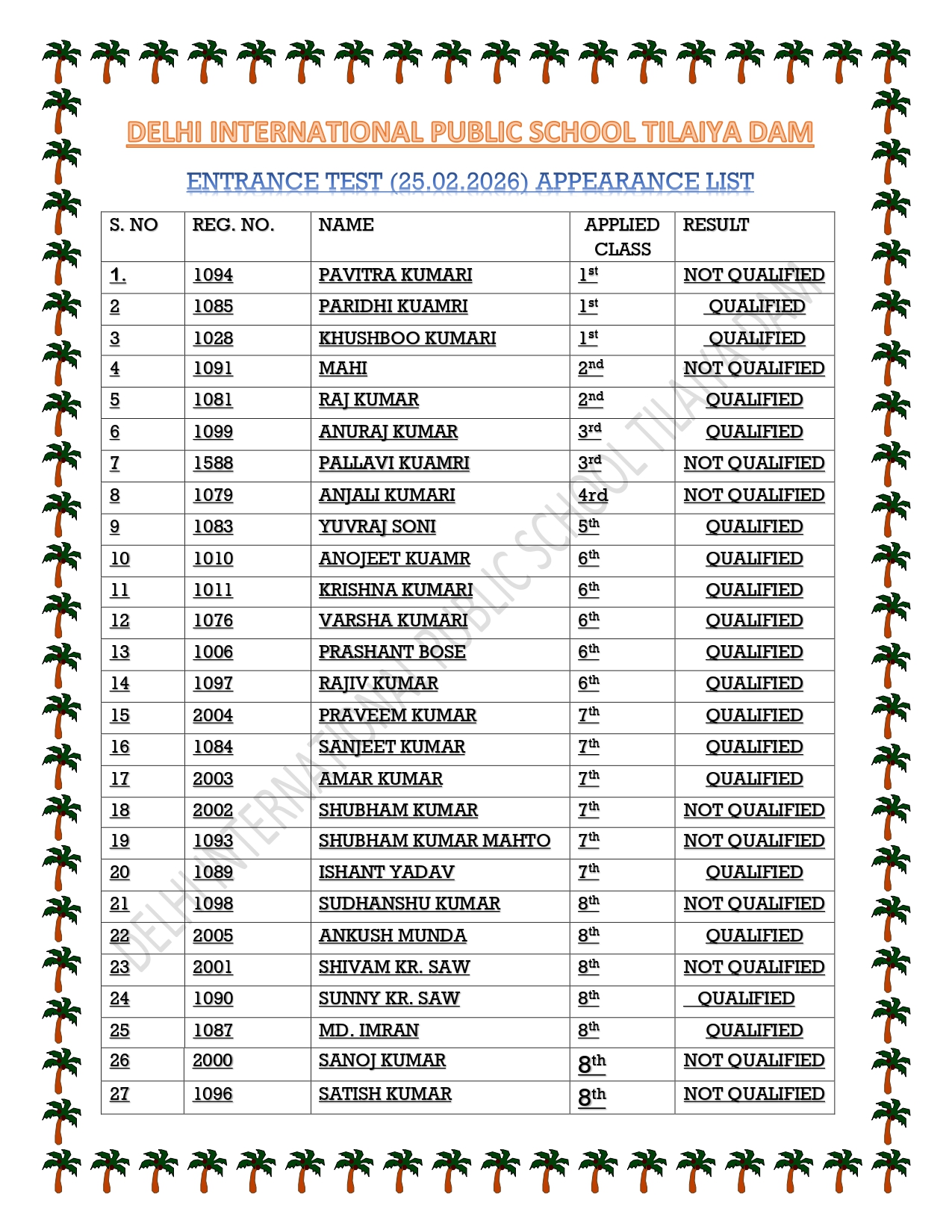 Result Published