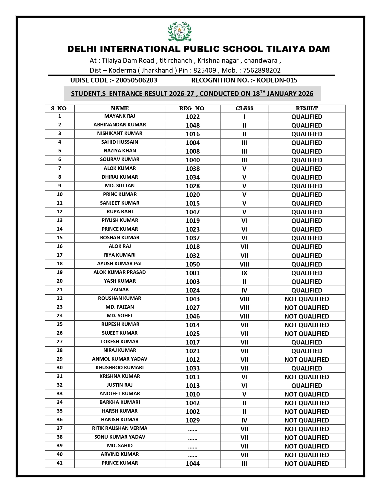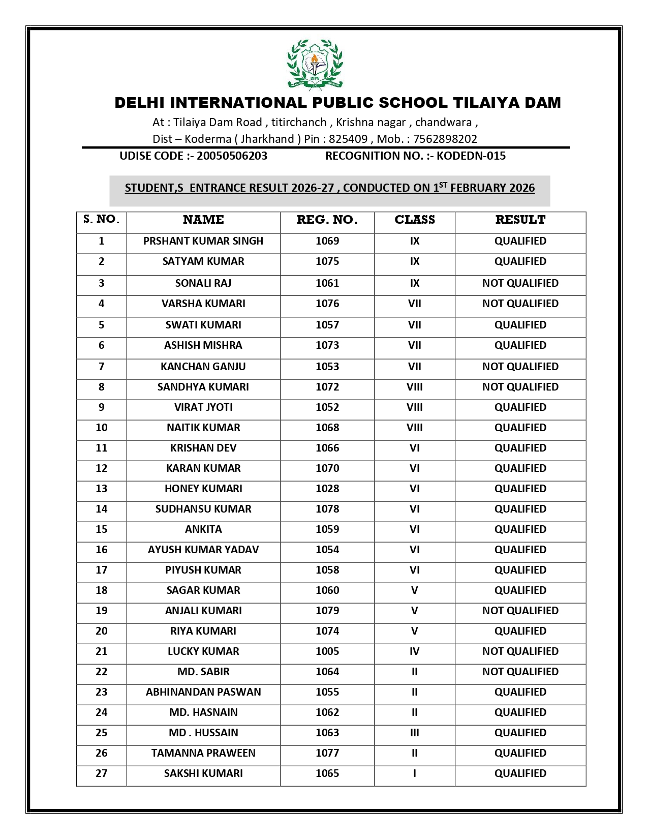 Delhi International Public School Tilaiya Dam